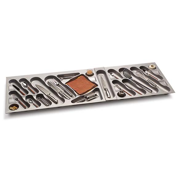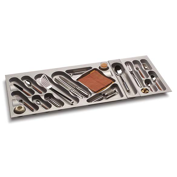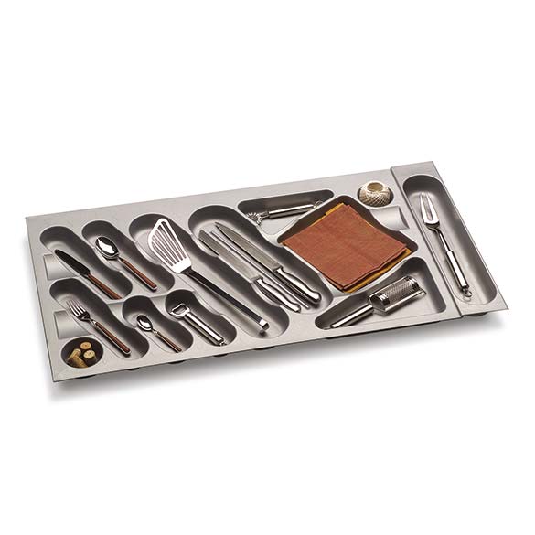 Designed by Lucc&Orlandini designers, the Design Line cutlery trays are characterised by the softness of the shapes and the functionality of the spaces, with diagonal positioned compartments.