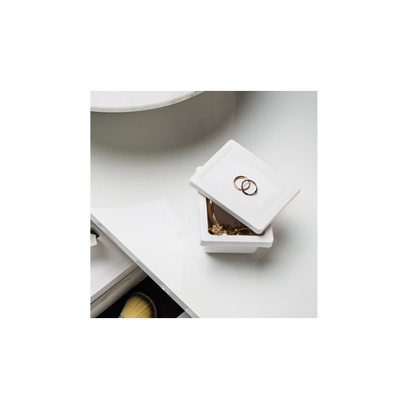 Pratique petite boîte dotée de couvercle, utile pour ranger élastiques à cheveux, bijoux et autres petits accessoires.