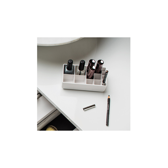 Original élément range-cosmétiques idéale pour organiser rouges à lèvres, crayons pour les yeux et vernis à ongles.