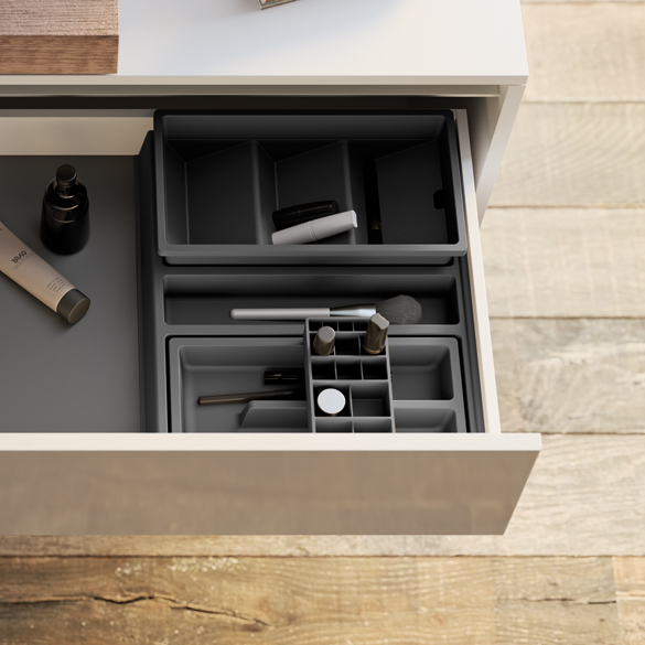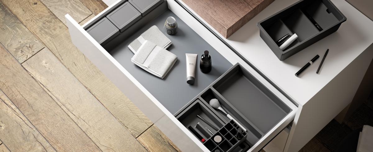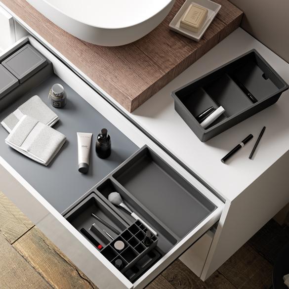 Les accessoires pour tiroir Collection ONDA sont idéales pour organiser au mieux les espaces des tiroirs pour meubles salle da bains.