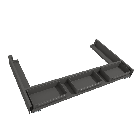 Le produit est proposé en variante de couleur gris orion et en deux différents hauteurs. Possibilité de disposer des bacs de différents dimension un à côté de l’autre afin d’optimiser l’espace en hauteur à l’intérieur des meubles.