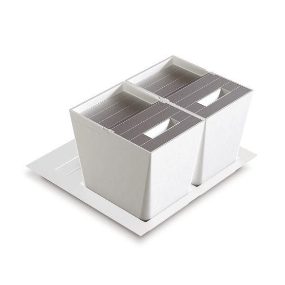 Raccoglitori da cestone con coperchi in finitura plastica opaca.